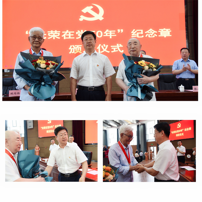 6月25日,我校召开“两优一先”表彰大会暨“光荣在党50年”纪念章颁发仪式。党委书记王亦农出席会议并讲话。全体在家校领导出席,党员处级干部,全体党支部书记,受表彰对象和党员代表与会。党委副书记陈利平主持会议。