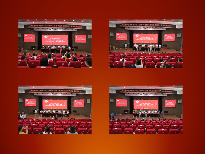 会议隆重褒奖了宋立业、赵天贵、巨世和、冯玉玲、齐海晨、韩振起、伍秋明7位党龄50年以上的老党员,表彰了机关党总支、动画与数字艺术学院党总支2个先进党总支,山西电影学院教工第三党支部等8个先进党支部,46名优秀共产党员和14名优秀党务工作者。王亦农为在场的党龄满50年老党员颁发“光荣在党50年”纪念章,与会校领导为受表彰的先进集体和优秀个人颁奖。
