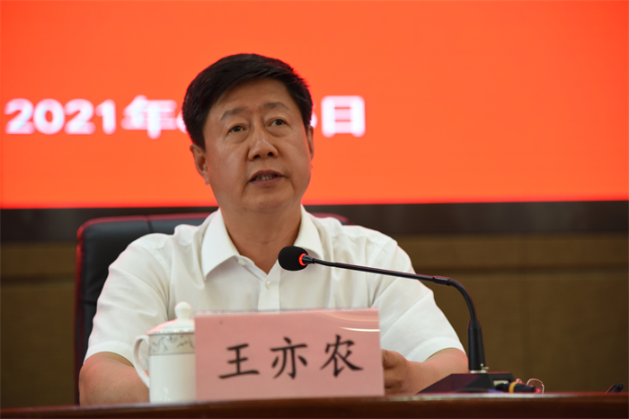 王亦农指出,回望党的奋进历程,我们心潮澎湃;展望山传美好未来,我们信心满怀。在我们党成立100周年的历史交汇点上,我们一定要以党史学习教育为重要契机,从百年党史中汲取奋进的智慧和力量,以一种全新的精神状态,立足当前、开拓创新,加压奋进、狠抓落实,以实际行动开创学校高质量发展新局面,一是必须把学习贯彻习近平新时代中国特色社会主义思想作为重中之重。要把学习贯彻习近平新时代中国特色社会主义思想作为党员干部的基本功、必修课,同学习马克思主义基本原理贯通起来,同学习“四史”结合起来,同推进“四个伟大”的生动实践联系起来,同学习贯彻习近平总书记视察山西重要讲话重要指示精神融会起来,同建设特色鲜明、国内一流的高水平应用型传媒大学的具体工作贯穿起来,学深悟透、入脑入心,固本培元、凝神铸魂,指导实践、推动工作,不断把学习成效转化为推进学校高质量发展的实际成果。二是必须把深入推进党史学习教育作为首要任务。要紧紧围绕落实立德树人根本任务,推动党史学习教育方法和模式创新,将党史学习教育融入全员育人、全过程育人、全方位育人各个方面,融入思想政治工作体系各个环节,学党史、悟思想。要加强思政课程和课程思政建设,充分发挥思政课的主渠道、主阵地作用,充分挖掘课堂育人要素,深化“四史”进课堂。要结合青年学生的思想特点、专业特点和实际需求,分类施策,统筹推进;结合学校工作实际,因地制宜,发掘红色教育资源、开展红色教育活动。要充分利用山西优质党史教育资源,发挥红色教育基地、优秀党员干部和优秀共产党员在党史学习教育中的积极作用,发扬红色传统、传承红色基因,从百年党史中汲取智慧和力量,办实事、开新局。三是必须把提升自身能力作为重要途径。要不断加强自身能力建设,切实提高组织协调的能力、依法办事的能力、把握大局的能力、战略思维的能力和开拓创新的能力,在推动学校高质量发展中担当大任、奋发有为。要把工作重点聚焦到圆满完成年度重点工作任务上,聚焦到实现“十四五”开局“开门红”上,聚焦到推进学校高质量发展上,不断增强主人翁意识、危机意识、答卷意识,立足学校本科教育教学实际,从自身做起,严格要求自己,以上率下,努力为学校高质量发展作出应有贡献。四是必须把改进作风作为基本要求。要按照习近平总书记的教诲,崇尚对党忠诚的大德,崇尚造福人民的公德,崇尚严于律己的品德;要坚定理想信念,坚定马克思主义信仰,坚定走中国特色社会主义的信心,不断涵养为党育人、为国育才的教育情怀;要始终胸怀“两个大局”、心怀“国之大者”,旗帜鲜明讲政治,铭记历史学榜样,令行禁止保落实,进一步提高政治判断力、政治领悟力、政治执行力,不断增强“四个意识”、坚定“四个自信”、做到“两个维护”;要增强宗旨意识、表率意识、纪律意识,明大德、守公德、严私德,做一心为民、一身正气、一生廉洁的模范,以实际行动恪守入党初心、践行对党承诺、诠释对党忠诚;要发扬创新精神,不断提高防范化解矛盾、解决各种难题的本领,知责于心、担责于身、履责于行,不断推进学校各项工作再上新台阶。