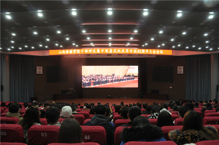 我校组织广大干部师生通过网络集中收看了大会直播。校领导王亦农、李伟、姚培林、张永德、郭卫东、王红叶在文华楼党委会议室收看,机关党务党总支、机关行政党总支、公共教学党总支教职工在第一会议室、第二会议室收看,各院系党总支干部师生在会议中心收看,仔细聆听习近平总书记的重要讲话,深切感受改革开放的辉煌成就。