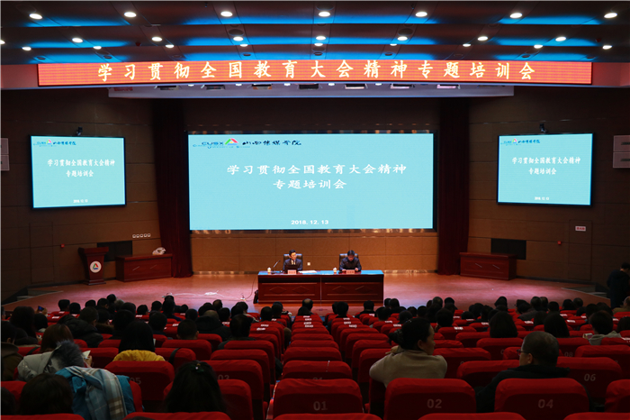 为进一步全面理解全国教育大会精神,推动全国教育大会精神在我校落地生根,12月13日下午,我校召开学习贯彻全国教育大会精神专题培训会,邀请省教育厅高教处处长李金碧来校作题为《聚焦质量 推动高等教育内涵式发展 遵循规律 构建高水平人才培养体系》的专题报告。会议由党委书记王亦农主持。
