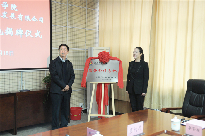 10月18日上午,我校与山西乐华恒业文化发展有限公司在文华楼第三会议室举行校企合作签约揭牌仪式。校领导王亦农、李伟、王俊刚、张永德,乐华恒业集团副总裁吴香雅出席。我校宣传部、招生处、学生处、团委等部门负责人及乐华恒业集团相关人员参加。仪式由党委副书记王俊刚主持。