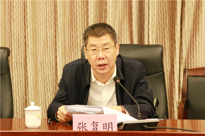 张复明作重要讲话,他指出,本次山西传媒学院领导班子成员调整,是省委省政府从全省高校领导班子建设的大局出发,统筹考虑山西传媒学院的实际情况和发展需要,慎重研究做出的决定,体现了省委省政府对学院领导班子建设和事业发展的高度重视和关心。张复明代表省委省政府对王建国同志在山西传媒学院任职期间做出的积极贡献给予肯定,并对李伟同志的个人情况作了简要介绍。他希望全校上下积极拥护省委省政府决定,以实际行动支持李伟同志工作,并希望李伟同志在省委省政府的正确领导下,与以王亦农同志为班长的校领导班子一道团结带领全体教职员工在新起点上推动各项事业取得新的成绩,不辜负省委省政府的重托和干部、群众的期待。他就学校下一步工作提出三点意见:一是以习近平新时代中国特色社会主义思想为统领,加强党对学校的全面领导;二是以改革创新激发改革活力,推动学校各项工作迈上新台阶;三是以服务行业产业和区域发展为己任,为山西文化旅游产业和转型发展做出新贡献。最后,他号召大家要紧密团结在以习近平同志为核心的党中央周围,以习近平新时代中国特色社会主义思想为指引,在省委省政府的坚强领导下,不忘初心,牢记使命,抓住机遇,担当作为,为把山西传媒学院建设成国内知名、国际有影响、行业具有示范作用的行业类高等院校努力奋斗。