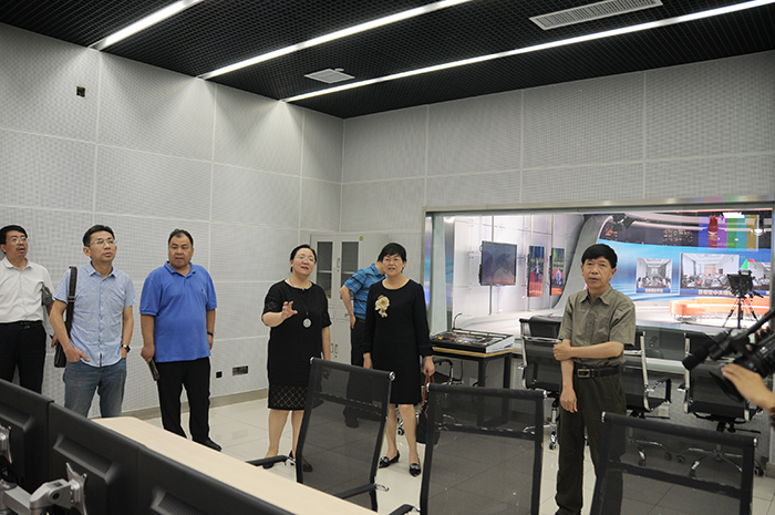 梁玉蓉副院长一行在王红叶副院长的陪同下,参观了我校文化科技园,演播中心和“一人一品”教学成果展厅。梁玉蓉副院长一行对我校理论与实践相结合的特色教学模式、突出的专业特色和作品创意以及完善的设施设备表示高度赞赏。