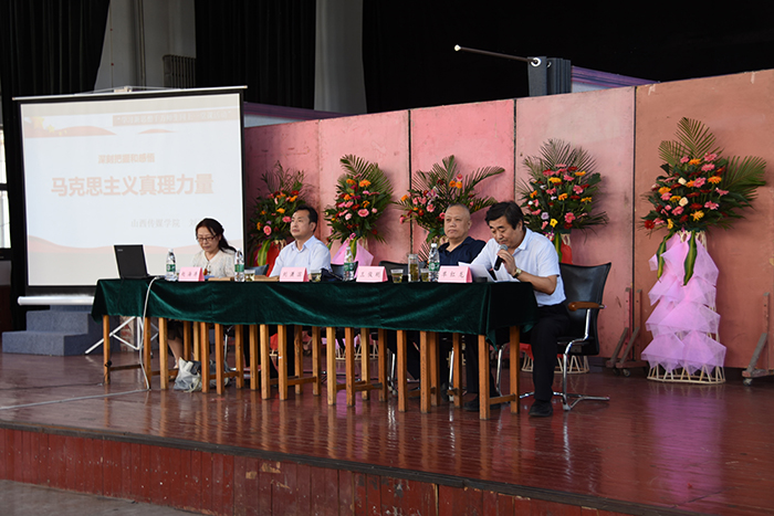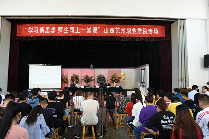 根据省教育厅“学习新思想 千万师生同上一堂课活动”安排,6月14日下午,“习近平总书记重要讲话精神讲师团”第十九组组长、我校党委副书记王俊刚教授,习近平总书记重要讲话精神讲师团”第十九组成员、我校思政部刘潇滨教授走进山西艺术职业学院,分别为山西艺术职业学院的300多名师生讲授了两场专题报告。山西艺术职业学院院长单红龙主持。我校党委委员、宣传部部长赵海涛参加。