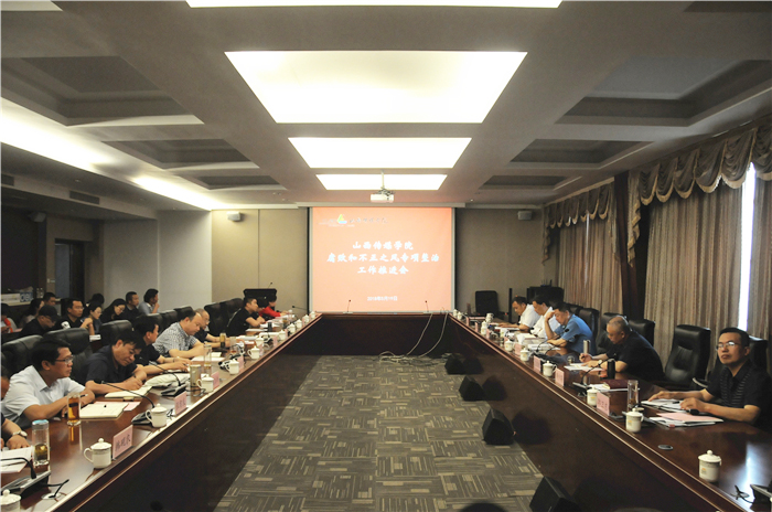 5月19日上午,我校在文华楼第一会议室召开腐败与不正之风专项整治推进会。校领导张汉静、王建国、王俊刚、刘锐、李少英、张永德、郭卫东出席,全体处级干部参加。会议由王建国院长主持。