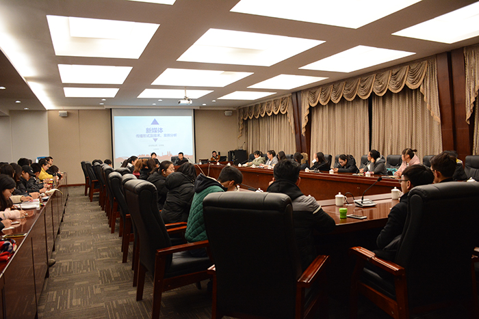 12月13日晚,我院宣传部举办新闻业务能力培训班第二讲。我院校友、新华网山西频道新媒体事业部主管王陆城应邀来院作了题为《新媒体传播形式及技术、案例分析》的专题讲座,校报全体成员参加。
